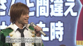 Daiki, Yamada and Yabu Kota are the MCs for the first talk segment where they talk to various Juniors about times that made them smile. The Juniors they talked to are, Tanaka Juri, Kikuchi Fuma, Kawai Fumito and Matsushima So. Fuma talks about how Miyata Toshiya trying to look cool made him laugh, Juri had a story about his dog, So talked about the first concert he back danced for, and then Kawai had a story about talking to some fans who when asked who the liked answered with "Yamada".
